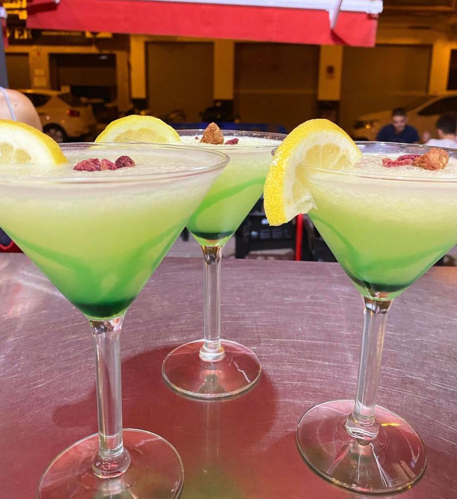 Sorbete de mojito, limón granizado, ron blanco, y un toque de licor de menta.